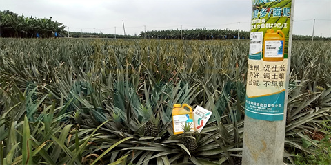 由于鳳梨根系淺,在鳳梨定植時,王大哥使用翠姆根碧多+翠姆微生物菌劑,滴灌2畝地,促進根系發(fā)達,使根扎得更深,提高苗的成活率,減少鳳梨苗的干尖黃葉,為后期提升產量品質打基礎。
